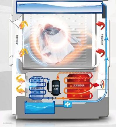 热泵式并不是用电加热管来加热。而是用压缩机把干衣机外面输入到里面的风加热。