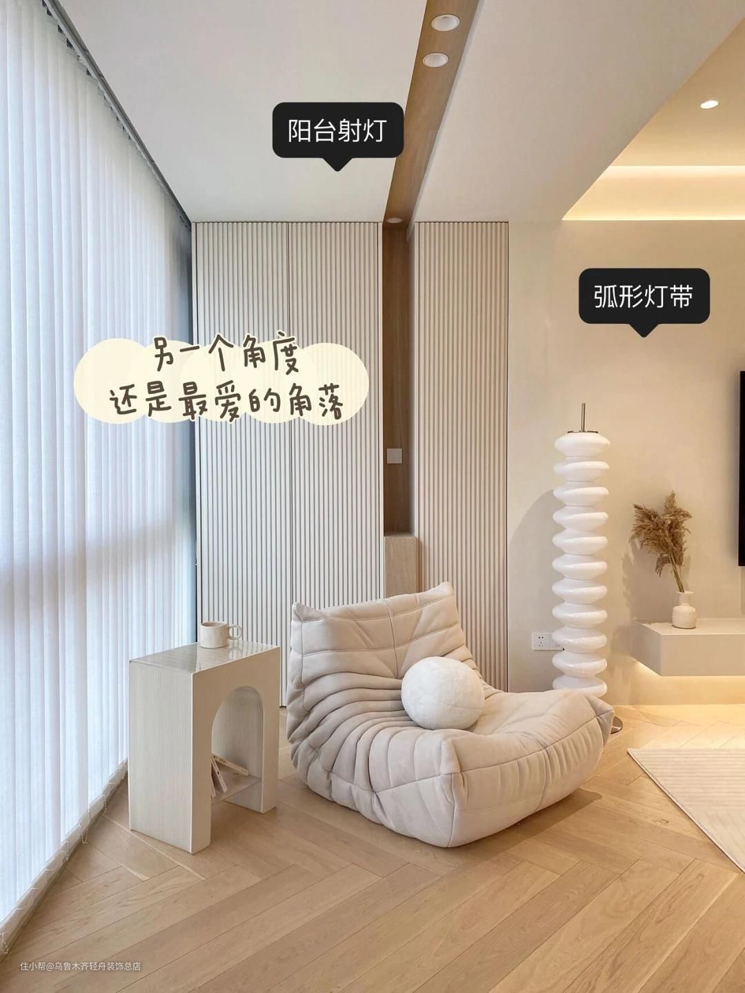 我把阳台上舒适的阅读角设计得井井有条,夜晚读书需要一盏落地灯。选择漂亮的就是可以