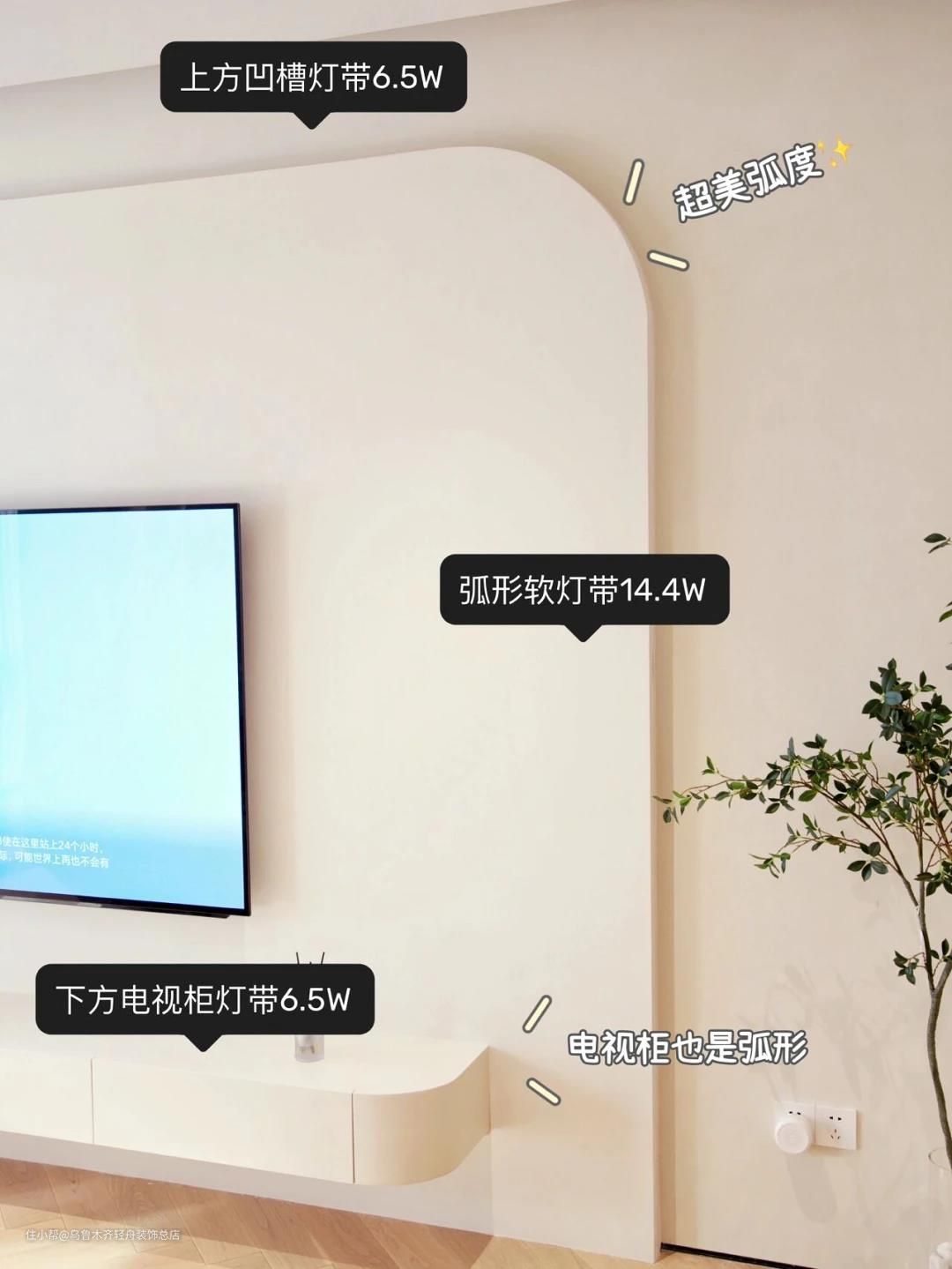 我家里用到哪里去了?电视背景墙高、中、低3条灯带和沙发侧面1盏灯光