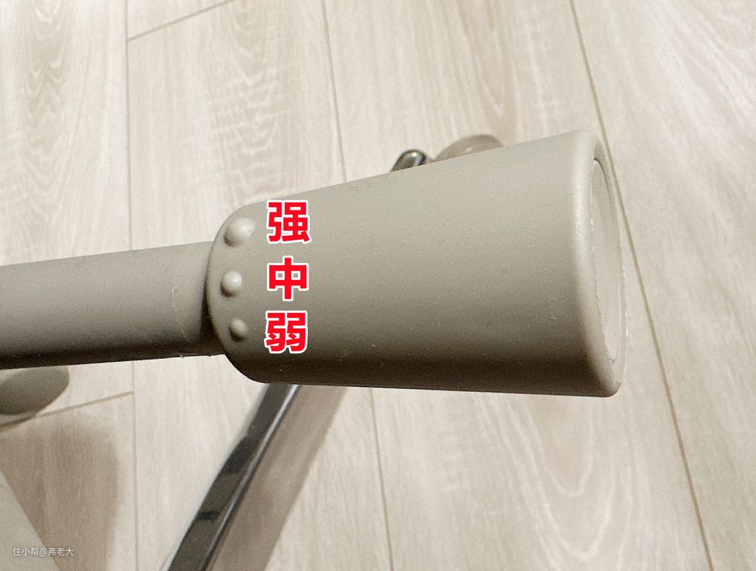 有趣的后仰弹力调节,分为强、中、弱三档,通过触觉辨识圆点,手指触摸便可识别。手柄的触感非常好,旋转调节得心应手,轻转两圈就能调节至合适的后仰弹力。