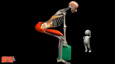 殊不知,弯腰驼背的前倾坐姿会给腰椎带来极大的荷载,而这些负荷都由腰椎部位的腰椎间盘承担。这里用一张动图演示腰椎间盘突出的病变成因——腰椎屈曲时,上下两个椎体向后挤压,导致腰椎间盘里的髓核(图中白色物质)向后移动、压力增大,髓核对后方神经(图中黄色物质)产生压迫,久而久之,腰部肌肉劳损,就造成腰椎间盘突出,更严重还会发展成为腰椎间盘脱出!
