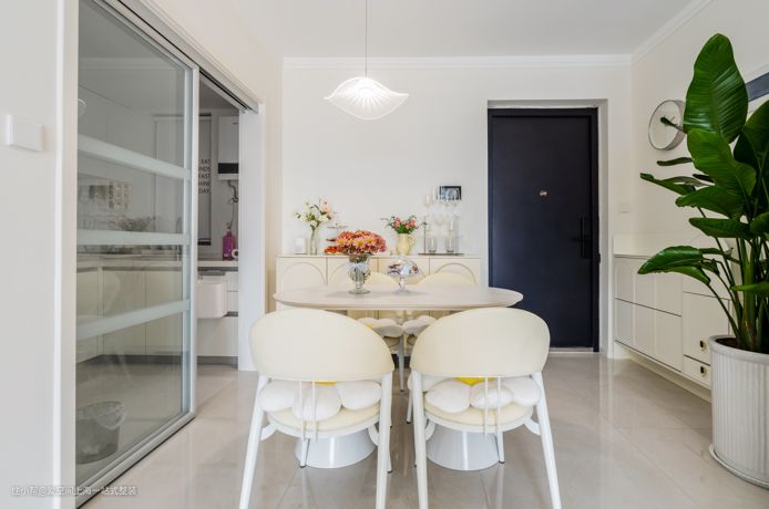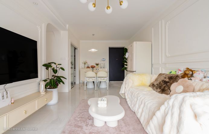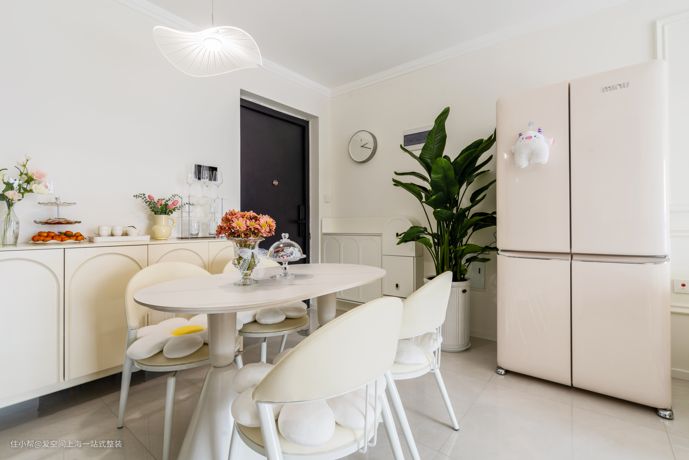 奶白色与PU线条、角花的柔美交融,法式奶油风客餐厅轻松拿捏!