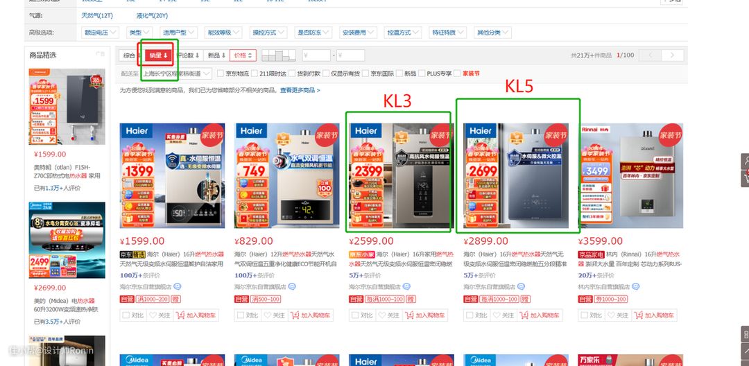 对燃气热水器做过功课的朋友,应该知道海尔的K系列是性价比很不错,目前KL3\KL5已经到电商平台行业销量TOP4了,要知道之前燃气热水器市场份额一直是被林内等外资品牌占据的,那时只有日系品牌才有下置风机的产品。