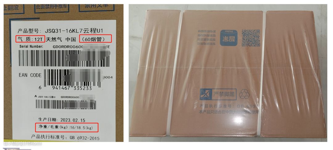 KL7的包装还是挺精细的,为了避免运输过程中雨水淋湿加了塑封的工艺;燃烧气质是12T的,烟管直径60MM,家里如果没有打烟管墙孔,记得提前预留75MM。整机的净重达到了16KG,比同类下置风机品牌产品重了3-4KG,可见海尔在这款产品上确实下足了功夫。