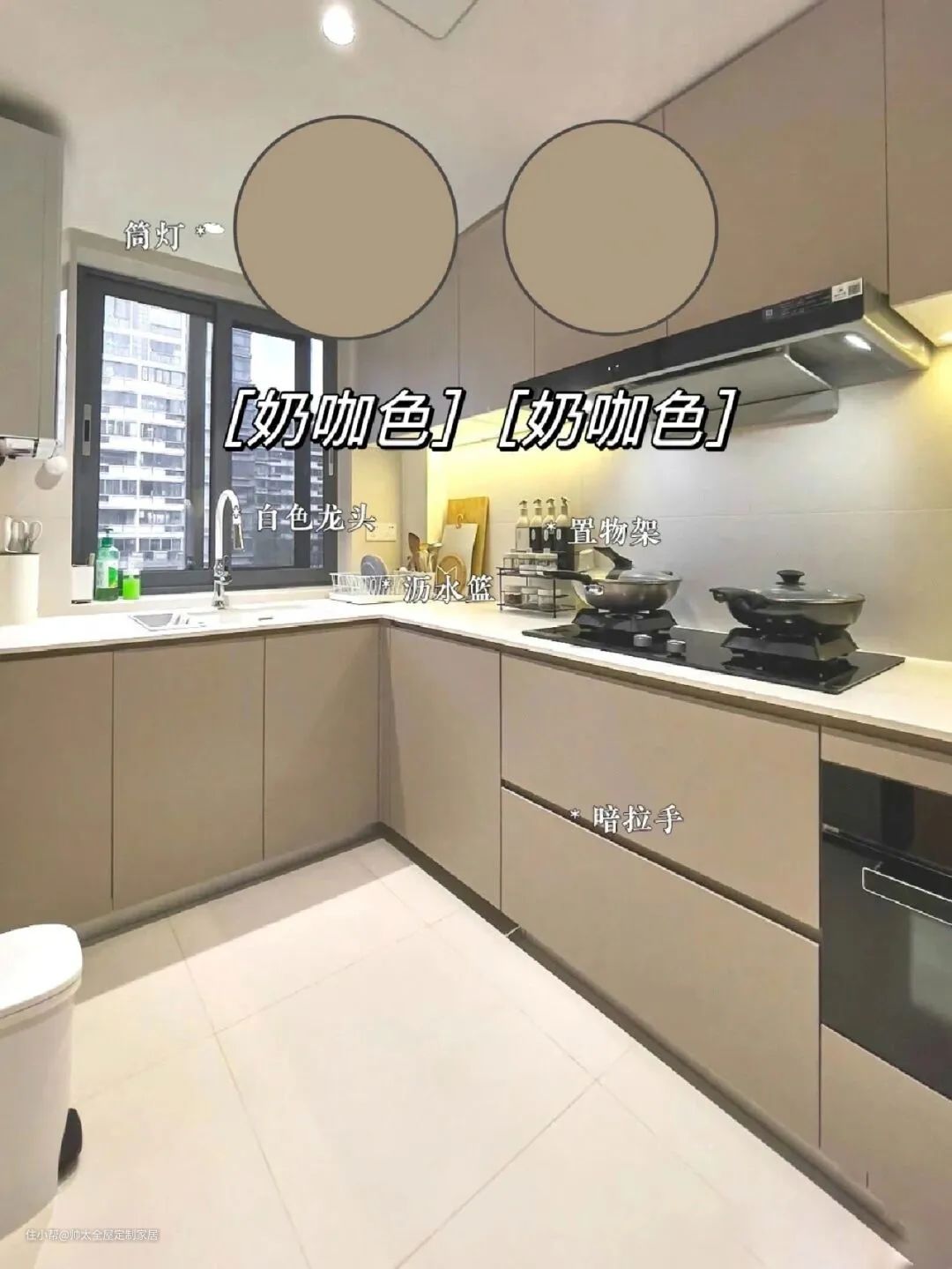 主色调:装修厨房时应该选择一种主色调,1-2种辅助色。颜色的拼凑能够让整个厨房看起来更有层次感和格调感。其中主色调大概占比为60%,辅助色占比30%,其余厨房用品占据10%。