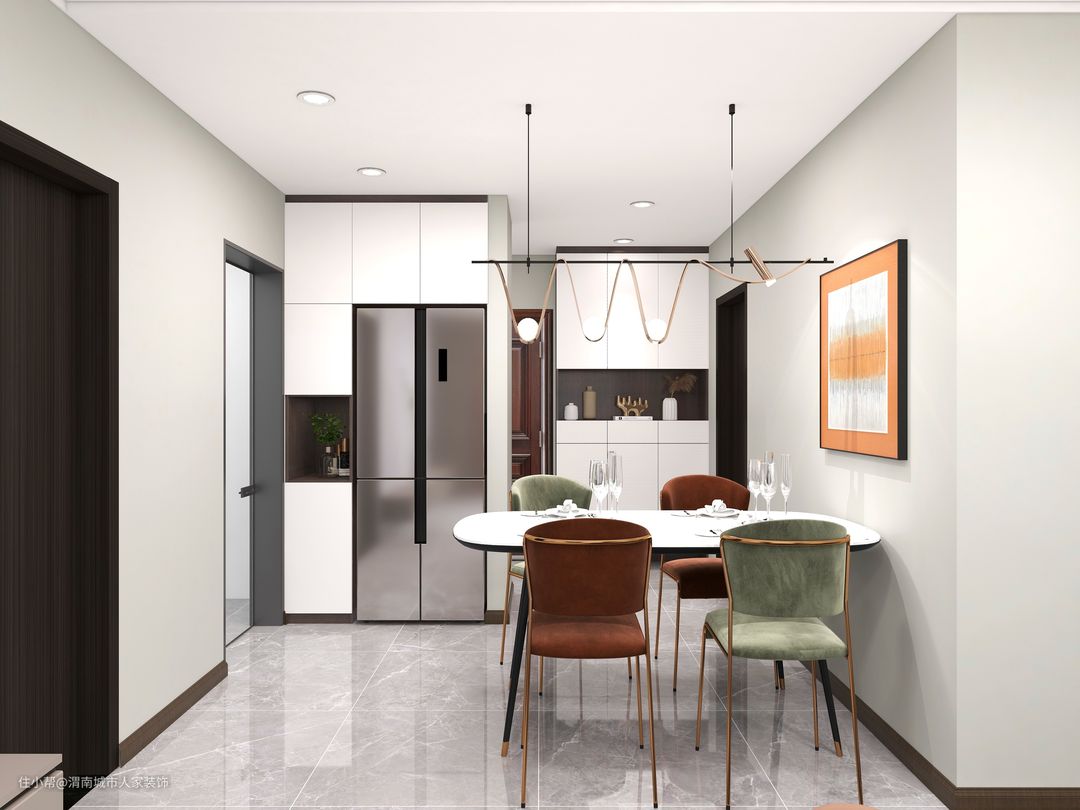 餐厅色调沿用客厅,墙体刷白设计,搭配艺术挂画,简约又时尚;