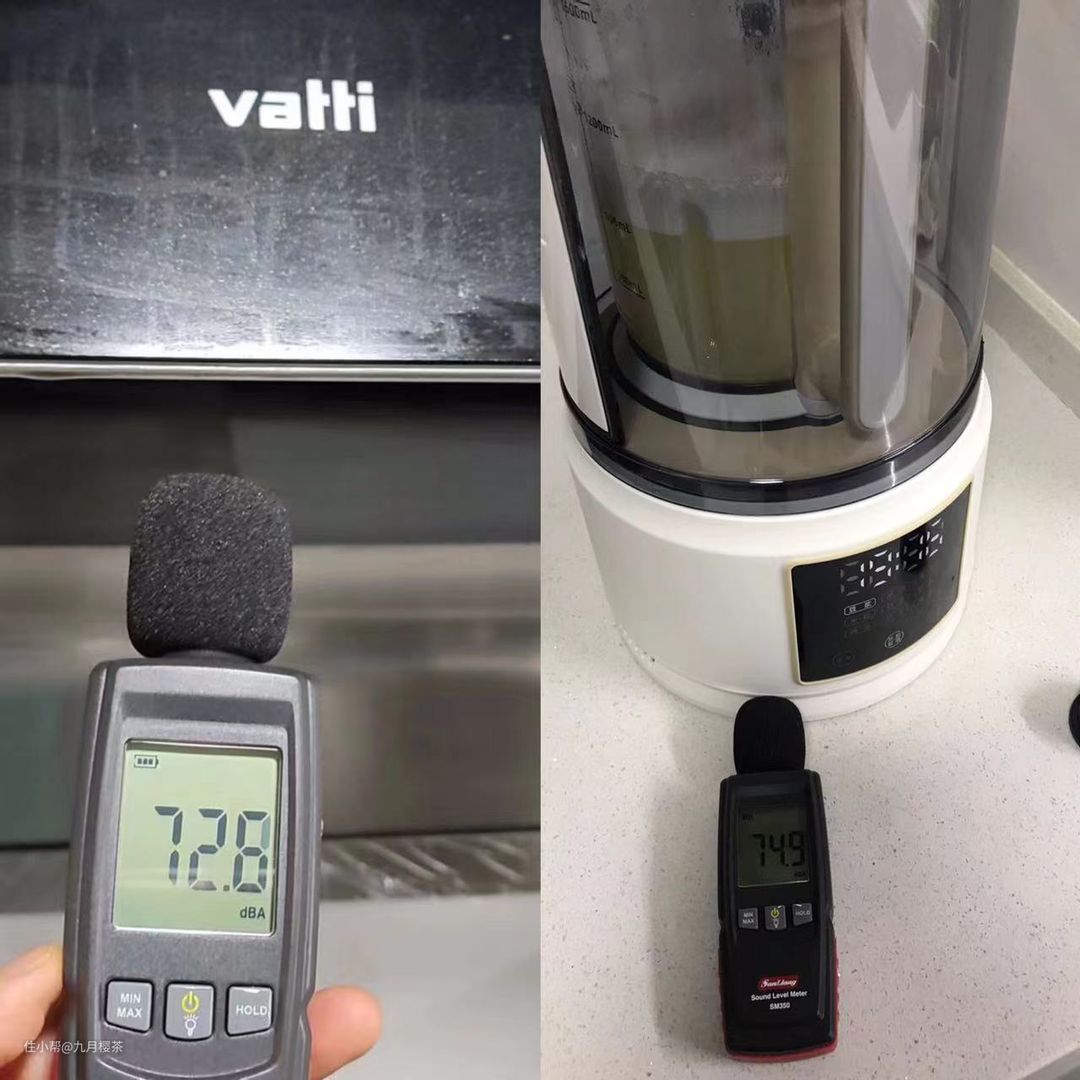 我自己实测下来,除了高速旋转打碎时噪音为74dB(而且蓝宝破壁机,是先加热很长一段时间,高速打碎只在操作后期才出现,并且持续时间短,与油烟机开启时噪音差不多)。