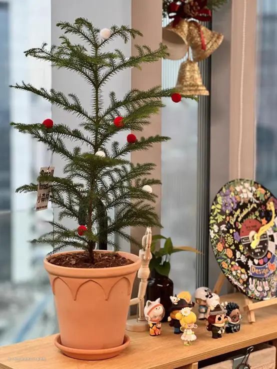 飘雪的十二月,家中摆一棵小圣诞树,枝桠之间点缀一些红色物件,氛围感扑面而来。