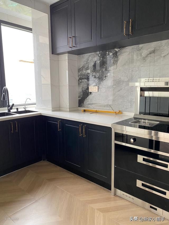 这是厨房,考虑到自己家的需求,最终安装的集成灶。集成灶功能性更强,油烟处理效果更棒比较节省空间,而且实用性非常令人满意。家里面如果安装集成灶的话可以参考下。厨房布局形成了洗切炒的顺序,让人操作起来非常方便,而且更为合理,把仅有的空间利用起来,由于装修法式风格,为了保持风格,一致橱柜没有选择白色刚好的颜色也比较好看,给人一种浪漫而稳重的感觉,在这样的厨房做饭菜很有心情。