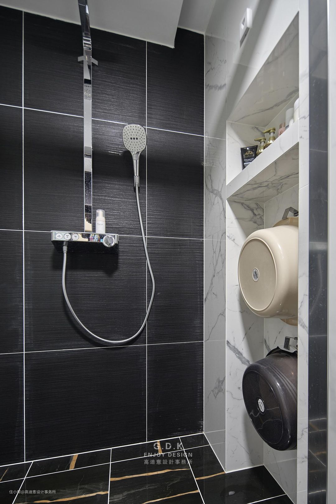柜体悬空,底部既规避了清扫中的卫生死角,还能放东西,更重要的是颜值在线,让空间很高级。