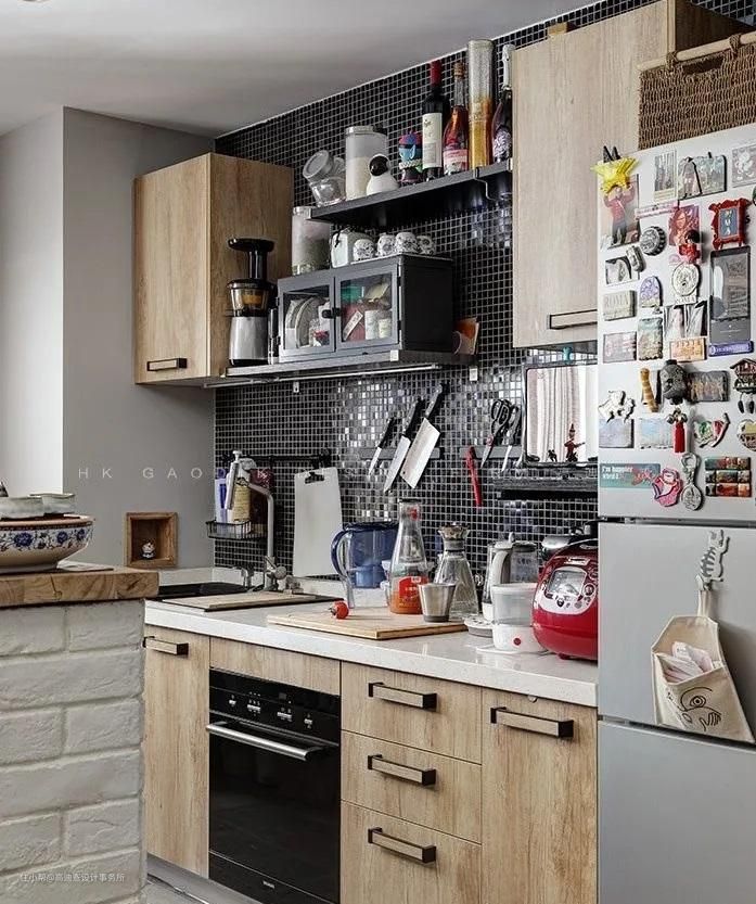 橱柜的门后有陈列柜设计,就像冰箱门后的多层收纳空间一样。