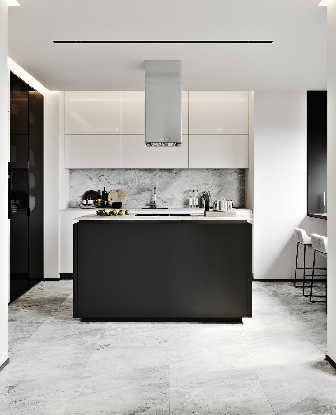 - 如果你家的厨房与客厅或者餐厅相连,可以选择岛型或者L型+吊柜式厨房。
