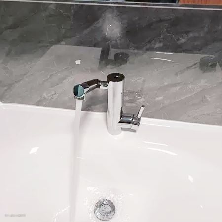第一是旋转,除了向下流水以外,还能向侧面、上面流水。这样刷牙的时候就不需要水杯了,清洗洗手盆也不需要再用手。前些年比较流行万向出水口,和可旋转水龙头比起来,后者的角度更多、旋转起来更顺畅。