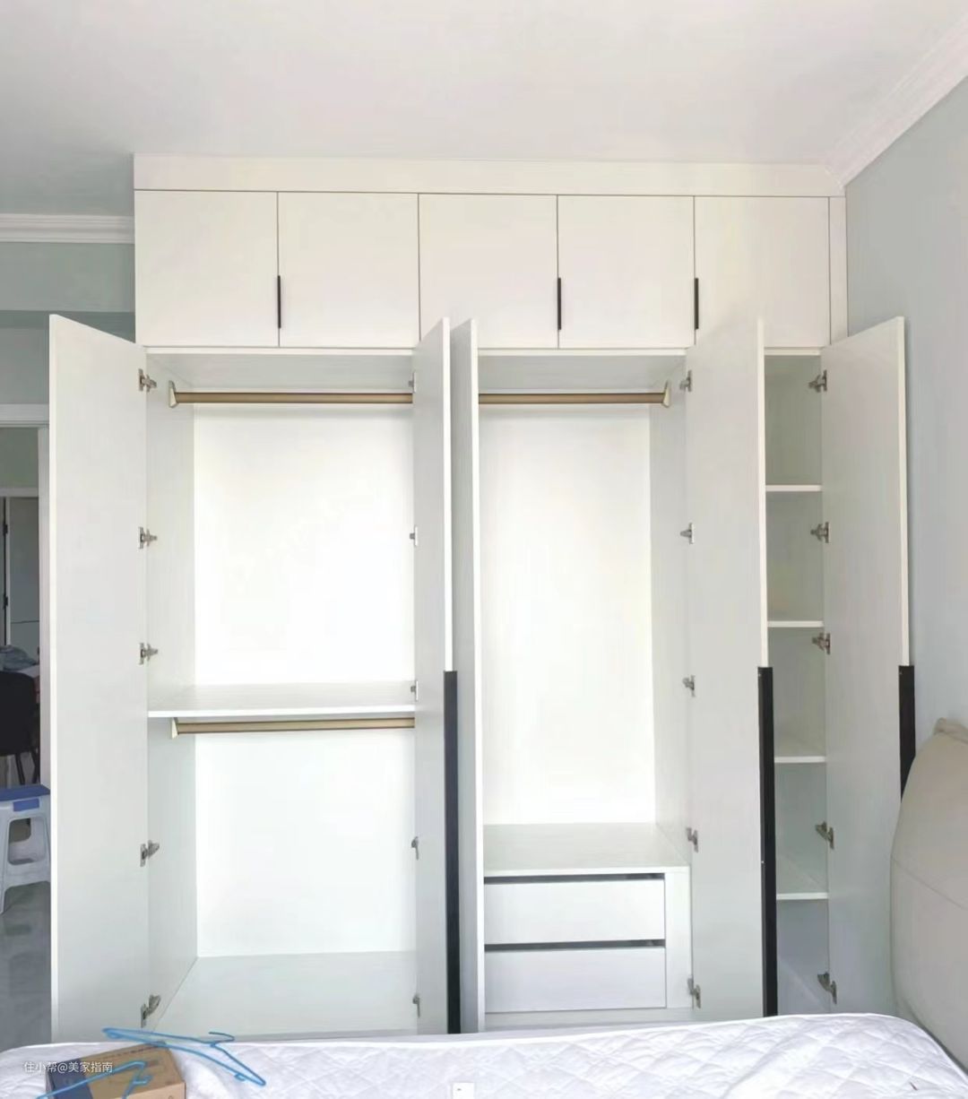 而且当卧室留足了空间,就会发现连衣柜都可以设计成“平开门”,而不是推拉门(后者轨道藏污纳垢,实用体验也远不如平开门)。