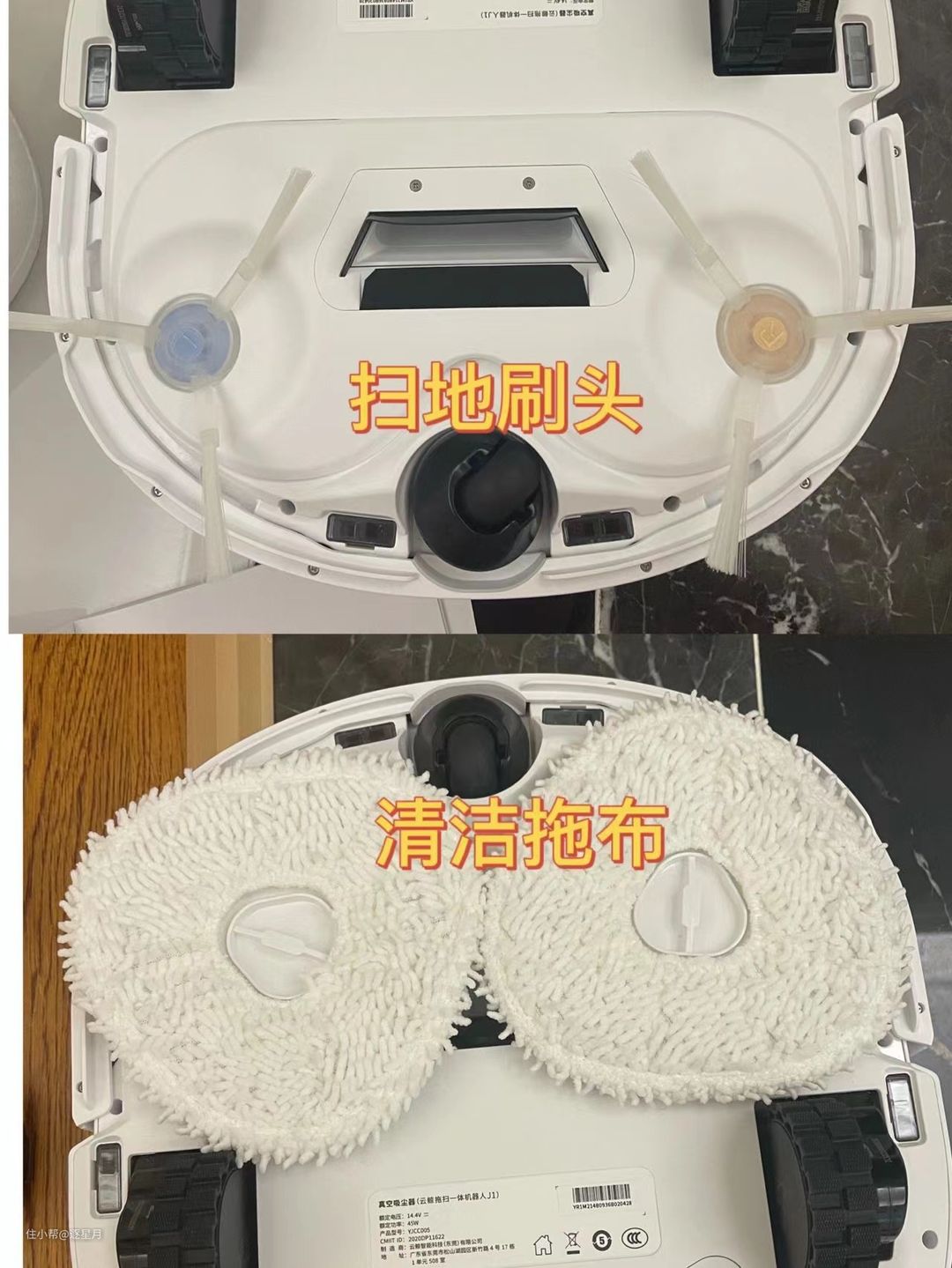 这三款最大的不同就是云鲸J1、J2,采用的是纯吸口组件设计,J3采用的是滚刷组件。