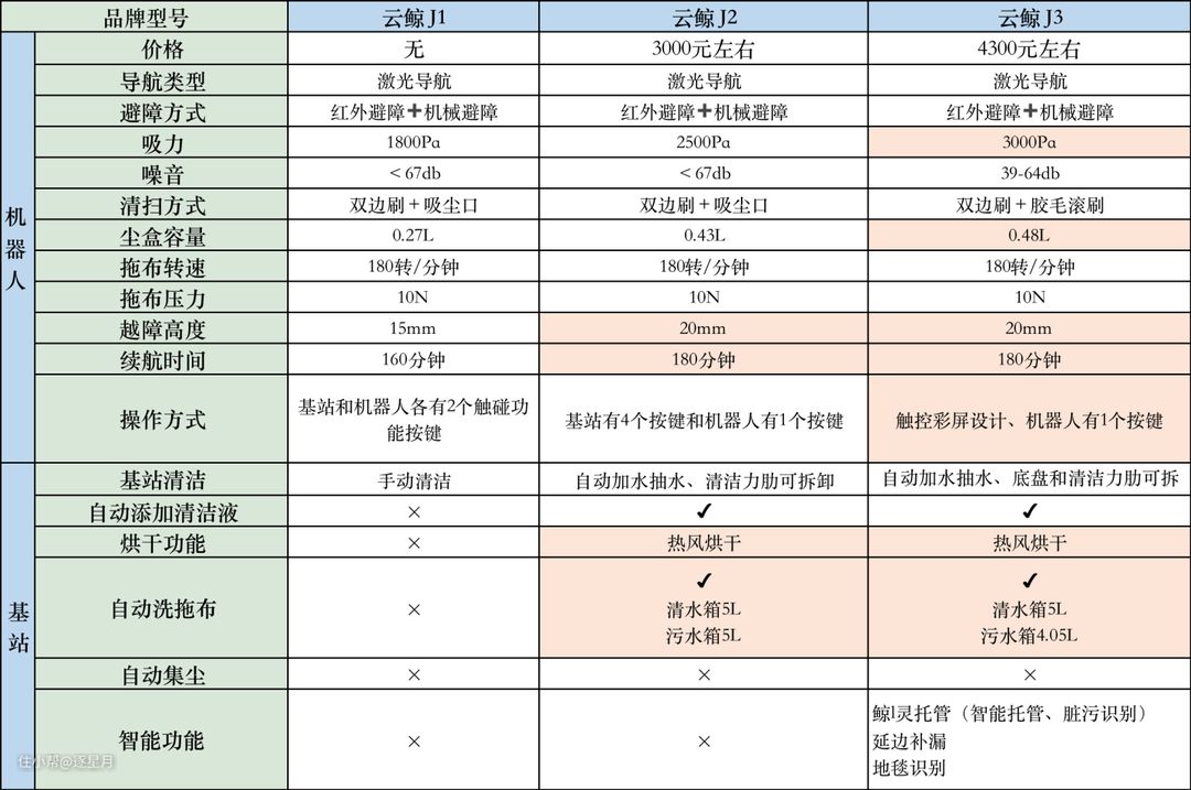 二、云鲸J1、J2、J3有何不同?哪款最值得入手?