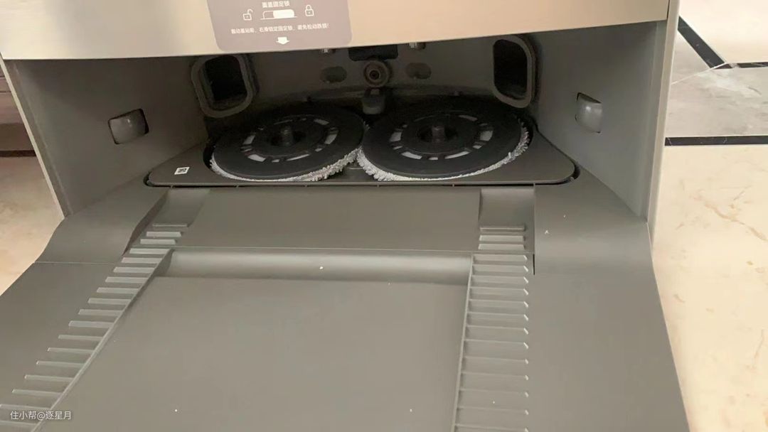 2、【充电、自动清洗拖布基站组合】:基站的占地面积会大一些,能自清洁拖布。