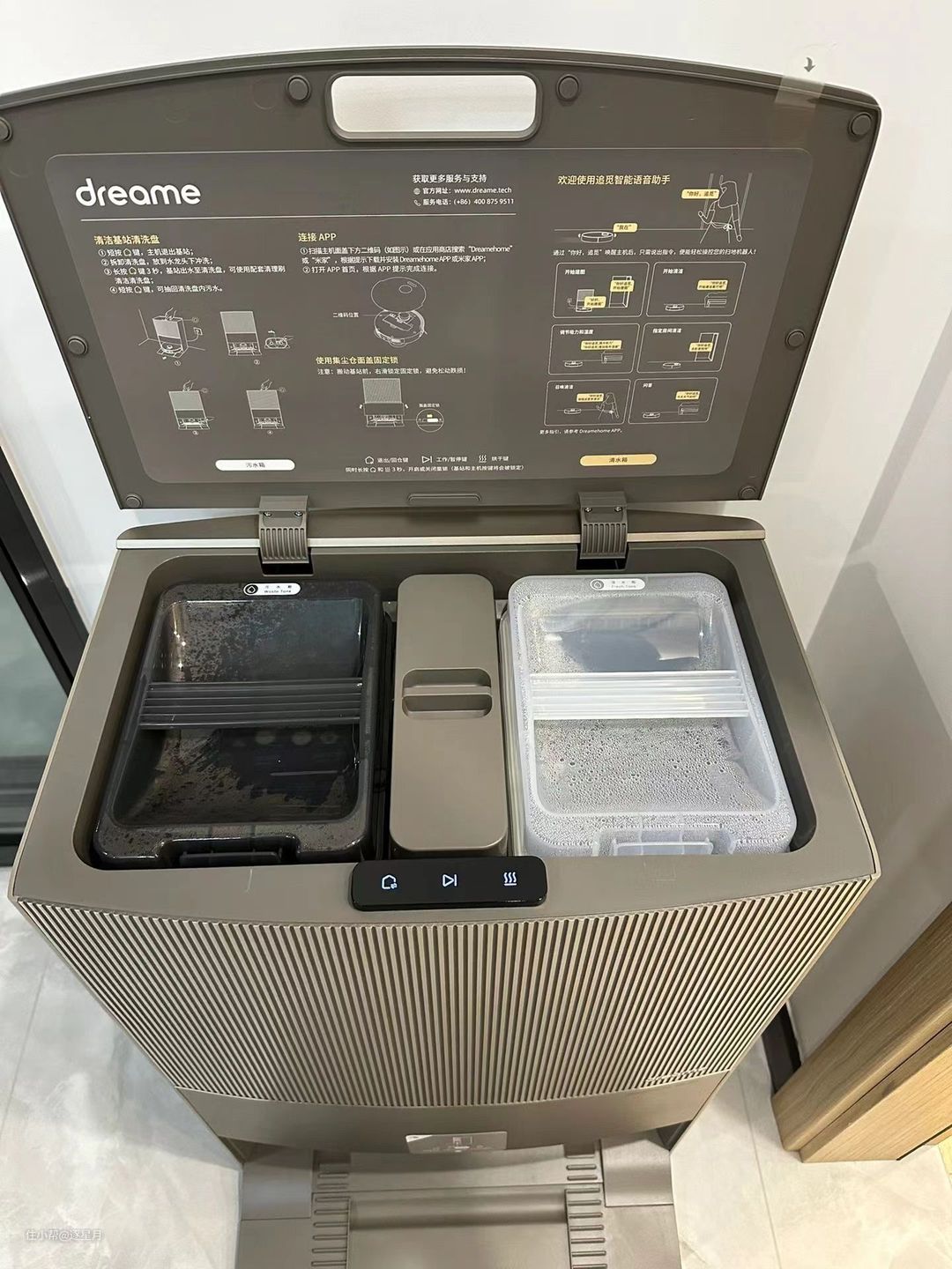 基站水箱容量比较小,分别为2.5L。不想自己倒水箱的朋友,最好是搭配上下水功能使用。在基站底部的清洁叻是可以拆出来直接用水冲洗,清洁起来也比较方便。水箱标配银离子除菌,还有热风烘干功能,3L的自动集尘功能,可以很好的解放双手。