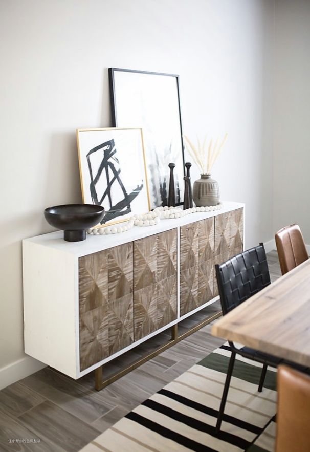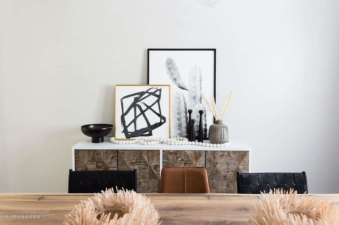 在极简风格的餐厅中,使用适量的装饰品能够为空间增加一份生机和艺术感。可以选择一些简约、优美、有艺术气息的摆件,并在墙面上挂上一些装饰画,突出餐厅的主题与风格。