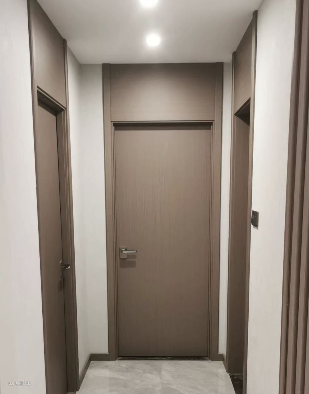 于是,想兼顾颜值,又不想花太多预算的人,就想出了视觉上看起来通顶,实则上面是用门套包的假通顶门。
