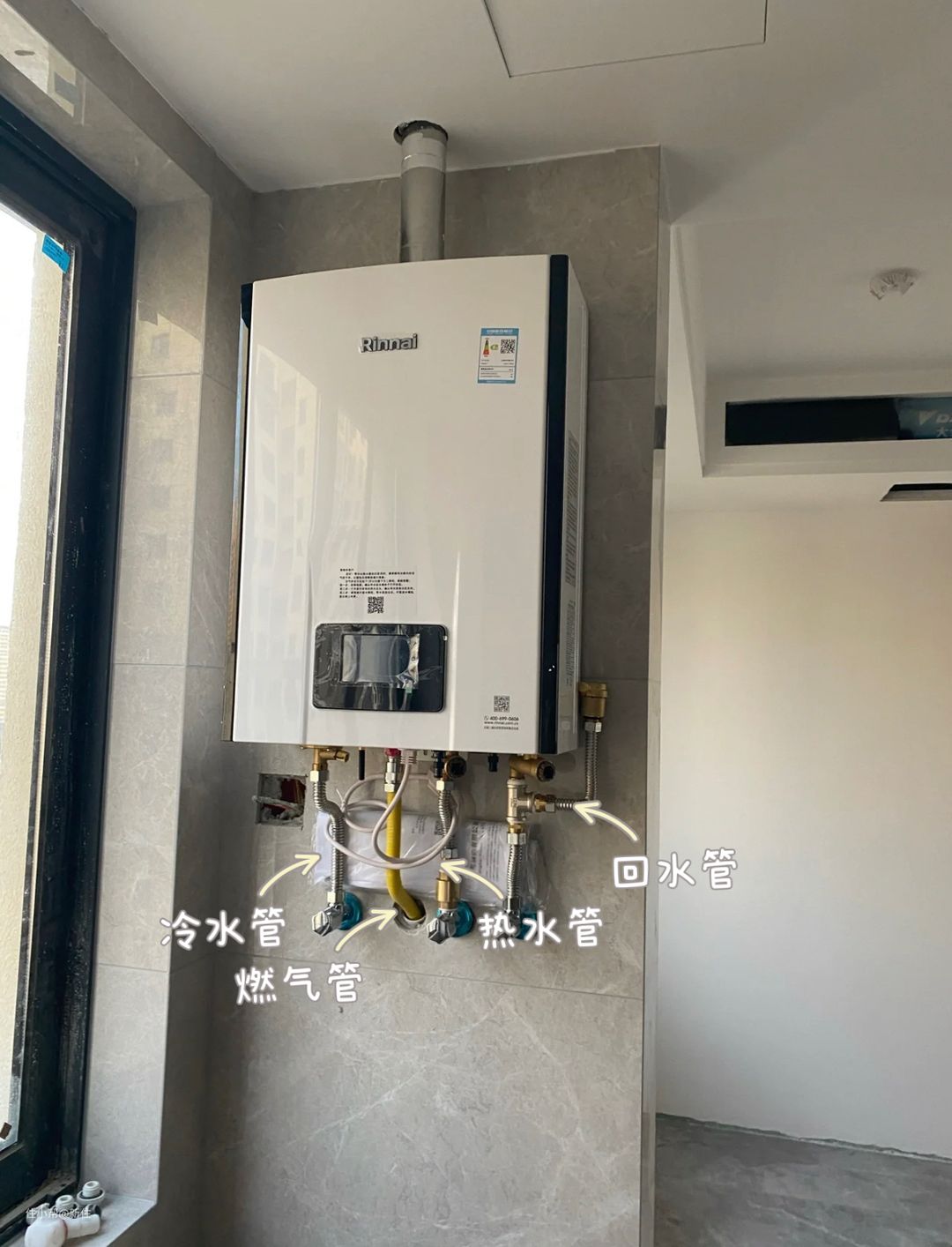 为实现这一小点点的改变,有人在装修前期配合零冷水热水器的要求,耗时耗财增加了循环水管,做好之后如下图,有四根管子。