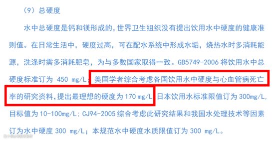 (顺提:中国和日本是考虑硬度过高导致烧水耗能高,所以有硬度要求。欧洲和美国要么没定上限,要么也高于中国标准,而且美国还有人觉得170mg/L的硬度更理想)