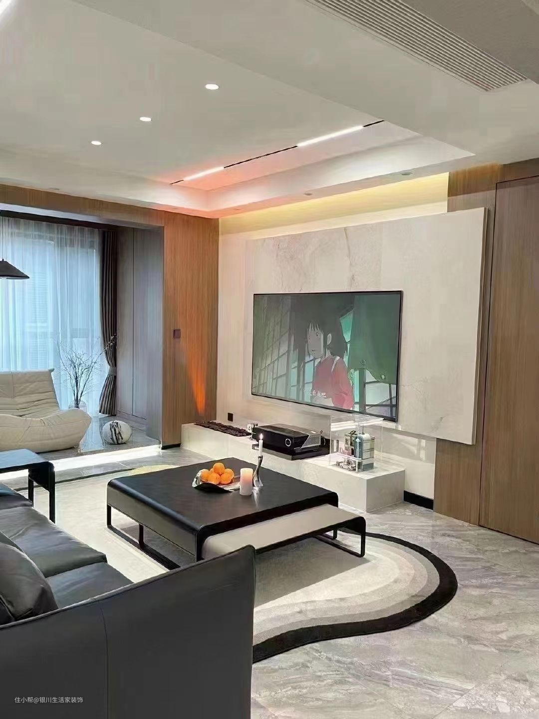 客厅整体以黑白的碰撞为主,高级而细腻