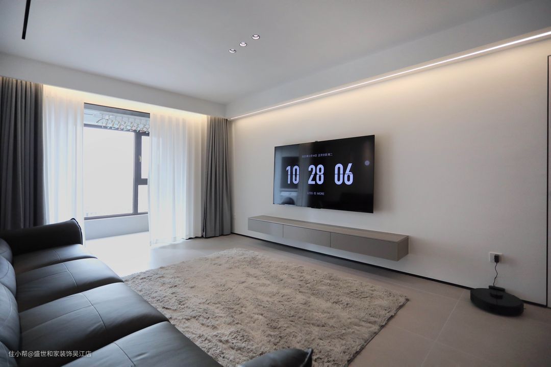 全屋采用智能家居,满足业主个性多样化需求的室内环境。悬空一字型抽屉电视柜,减轻空间的厚重感,给人以轻盈、美观的视觉观感。