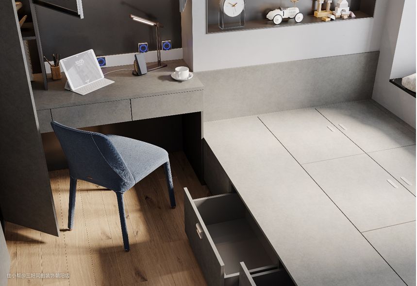 大多数人都会忽视掉床在收纳方面的重要性,从而也忽视了床下空间的使用。如果你家的床是做悬空设计的,可以利用滑轮抽屉柜进行收纳,做成一个储物空间,将不常用的棉被、衣物储存进去,随用随拿非常方便。或者直接定制自带收纳格的床,可以保证设计风格更加统一,实用又美观~