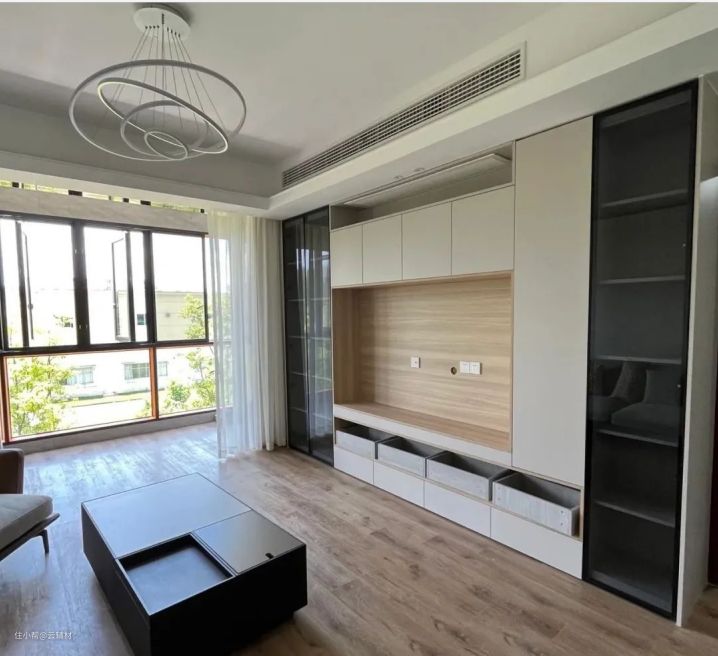 因为现在流行的满墙电视柜的做法,基本上是通顶电视柜。