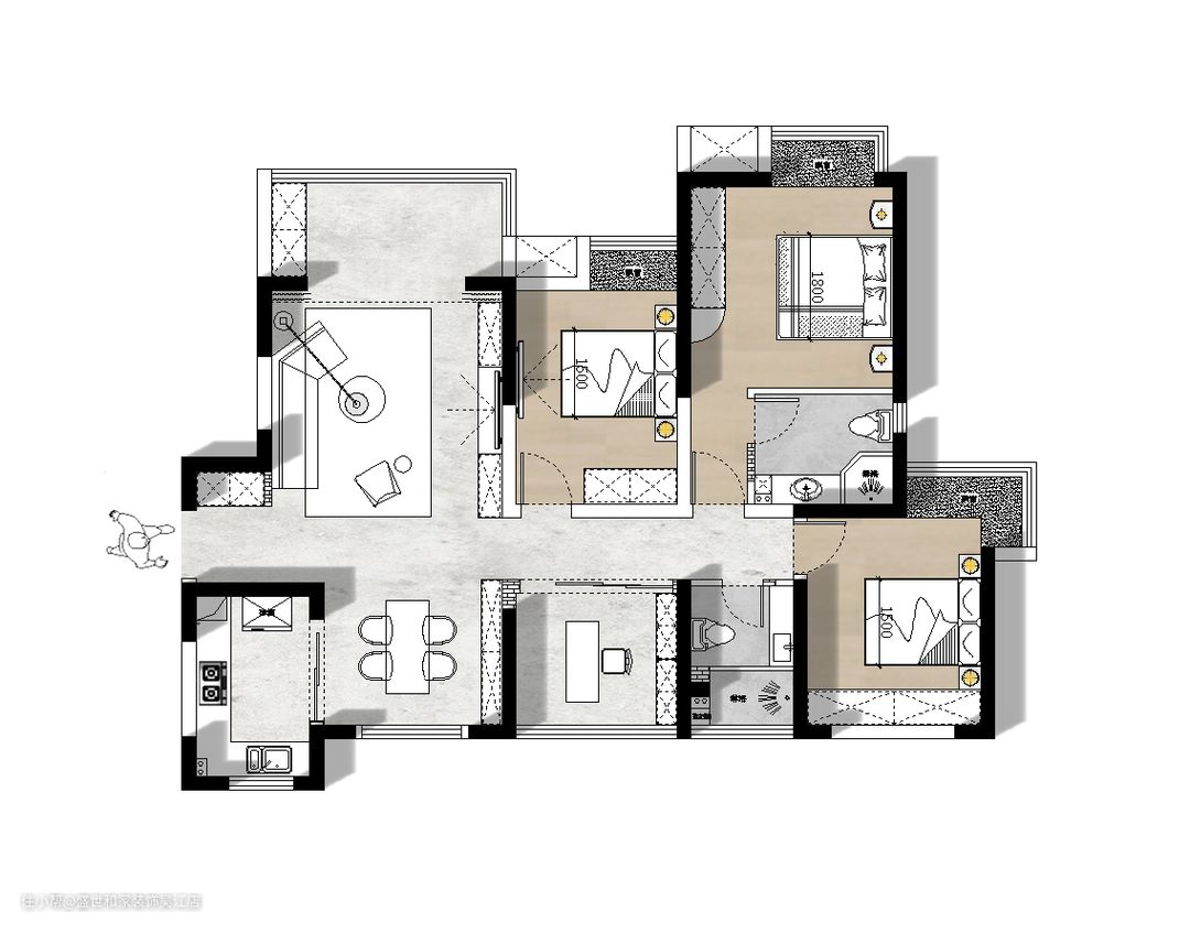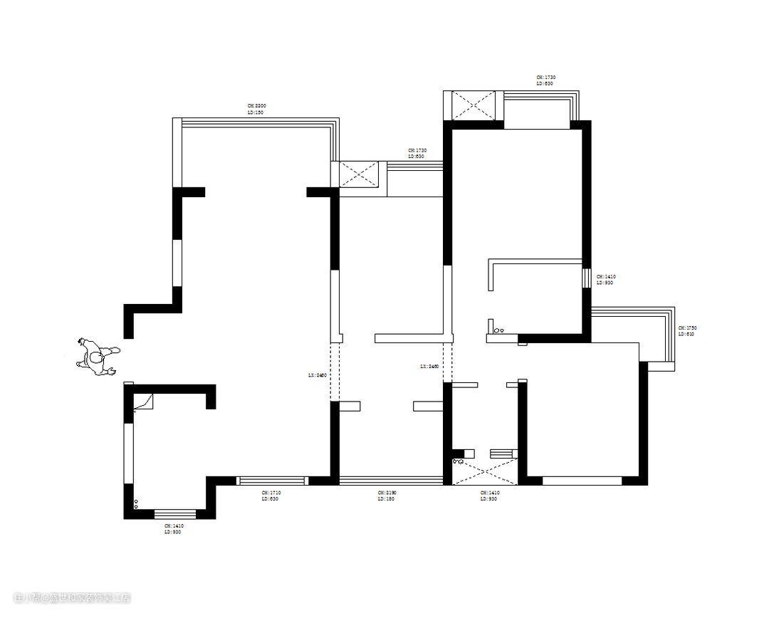 原始户型空间南北通透,每个空间都有窗户,承重墙较多,因此在格局上做不了太大的改动,但原始户型分区合理,每个空间功能分明,在空间改造不会造成太大的难点,阳台是L形窗户,无需做过多改变,只需要将优势放大,就是最好的改造。