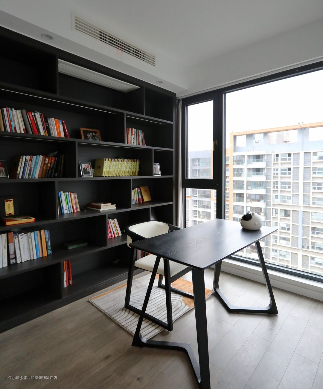 书房以黑白为主,主营造一种庄严稳重的空间质感,一侧的落地窗既满足书房日常采光,更为走廊填补自然光源的缺失。
