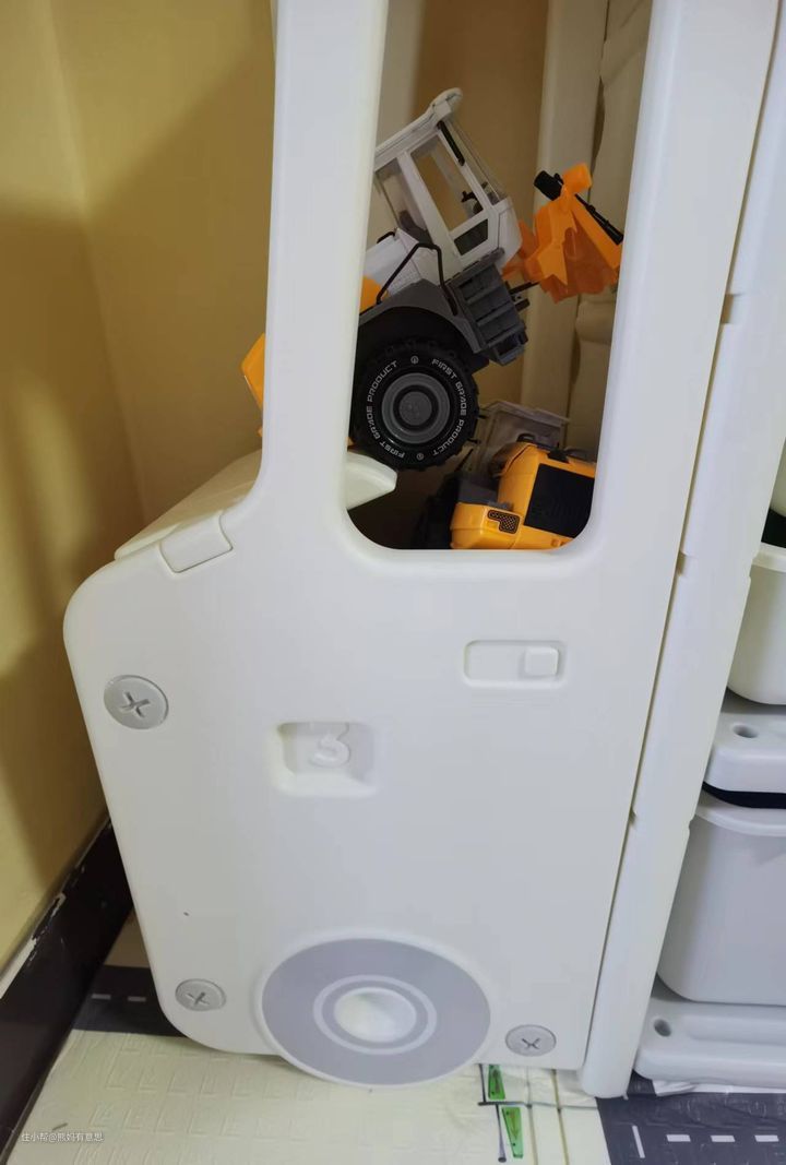 我们全家都超爱这个车头的设计,能搞定体型巨大、难搞的大家伙们。弟弟那些大号工程车都放里面了,要是女孩子使用,收纳毛绒玩具也是一绝。