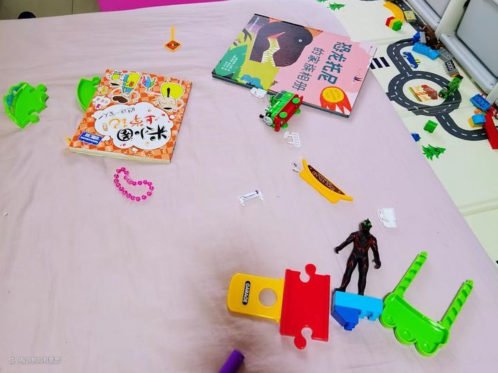 啥叫玩具散落各处,大概就是刚盯着老大上完网课,过来看床已经被老二祸祸成这样了?