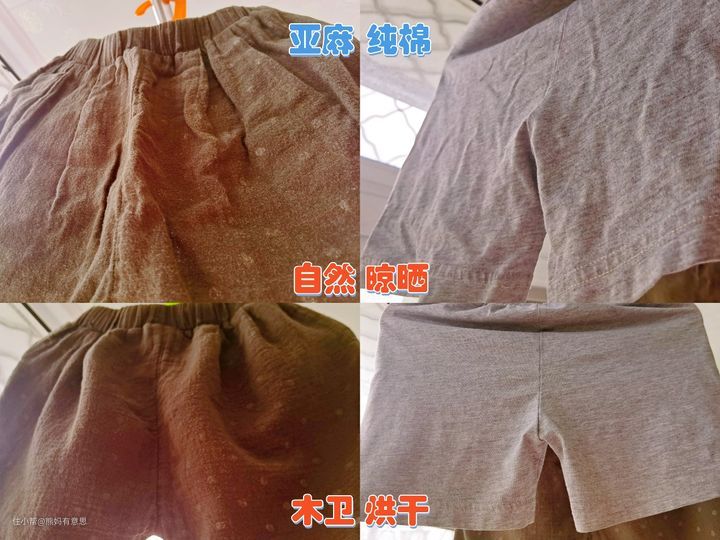 永远梳理不平整的亚麻衣服和常规的纯棉衣服烘干/自然晾晒效果对比: