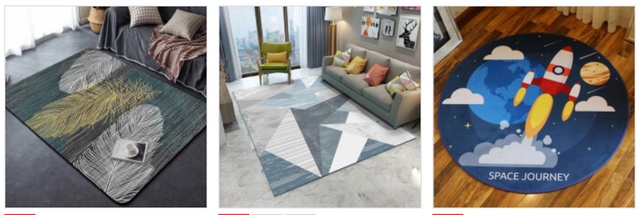 这里面的地毯在种类上会比较少一些,不过有一款是属于简单的北欧风格,在颜色款式上也有四种,相对来说还挺好看的。