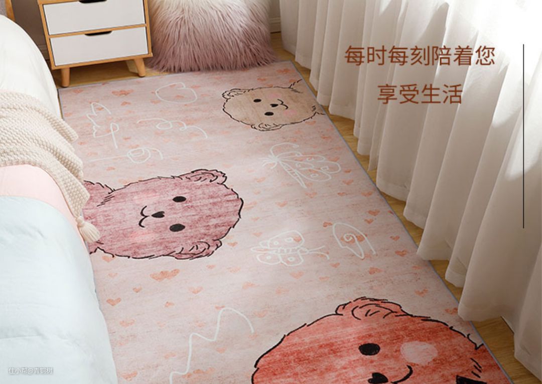 这个地毯就显得很好看,属于卧室里面的温馨可爱的地毯,风格是属于日韩风格。