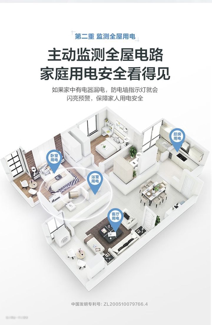 而安全方面海尔有自研的国际标准防电墙的技术,在前面就提到过从02年到现在已经连续20多年0事故,同时还有智能全屋用电监测系统,会自动监测屋内是否有漏电,如果监测到漏电防电墙指示点就会自动亮起,保障我们的安全。