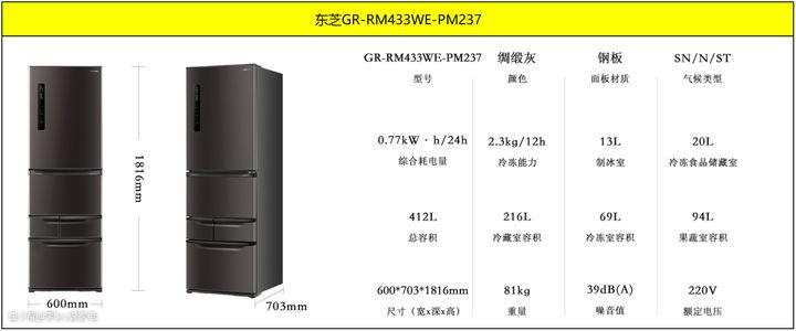 点评:东芝433在中高端品牌中算是非常值得购买的性价比型号了,双循环+自有无霜风冷技术+光触媒去味抗菌,已经对得起这个价格,再加上东芝一贯的人体工学设计,做到了精细收纳,小身材大容积,对于收纳控来说,简直是福音。