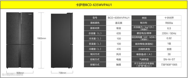 点评:主打原石美学的卡萨帝635型号冰箱在颜值上和品质上就足够吸引人了,外加独立三循环系统,变温室也可以独立控温,让你告别肉腥味的冰激凌蛋糕。