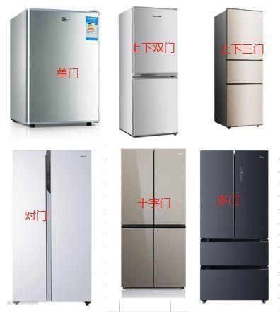 冰箱的开门类型有单门、上下双门、上下三门、对开门、十字门、多门。