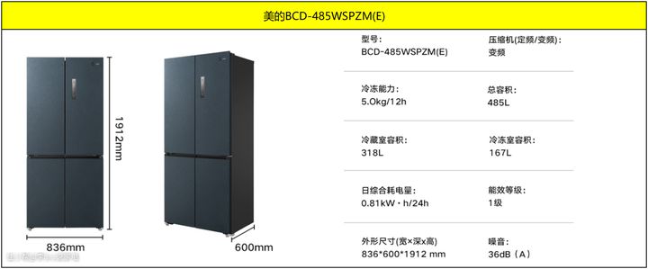 推荐了超窄,再给大家推荐一款超薄-美的BCD-485WSPZM(E)