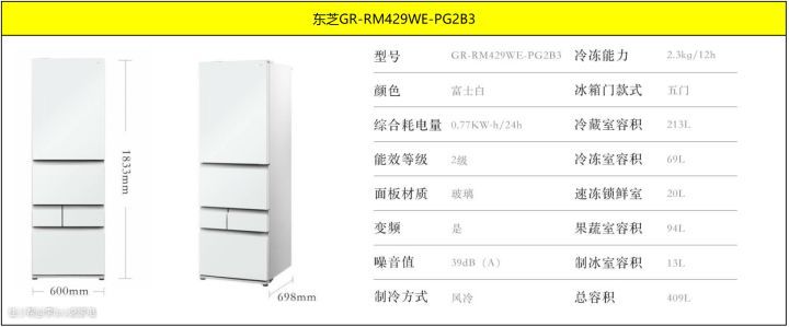 特点:这款冰箱的最大特点是纤细高挑不占地,让小户型也配得上大冰箱,适合小公寓、loft户型,同时富士白的颜色百搭现在的家居风格,和东芝433同样的无霜冷冻科技和双循环制冷。