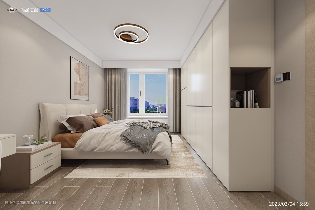 主卧以原木元素为主,地板通铺原木地板,搭配原木色的门,用细腻的质感和自然的色泽纹理,展现出清雅、通透的视觉效果,整个空间都散发出自然舒适的生活气息~