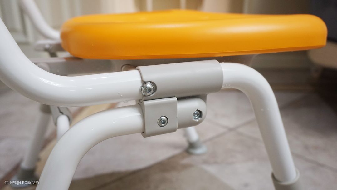 针对不同身高,松下康养折叠淋浴椅还贴心的设计了6档调节,之前去比对网上很多仿款,都是无法调节高度的。高度调节的按键并不是特别重,调节比较轻松。
