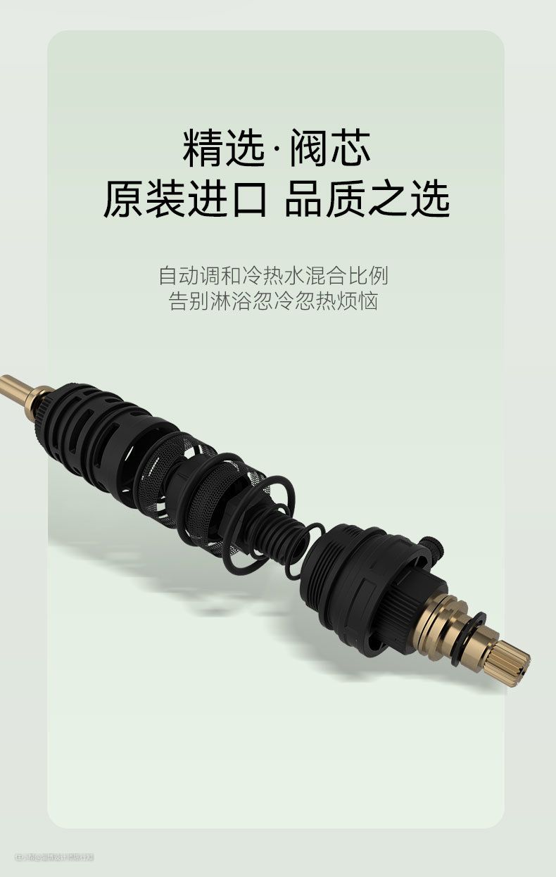 花洒的“心脏”就是开关处的阀芯,因为阀芯不仅控制着花洒的冷热水流量、压力、转向,还决定了花洒开关的使用寿命。像咱们家里经常出现的花洒漏水、花洒合不上等问题都是由于阀芯老化导致的。