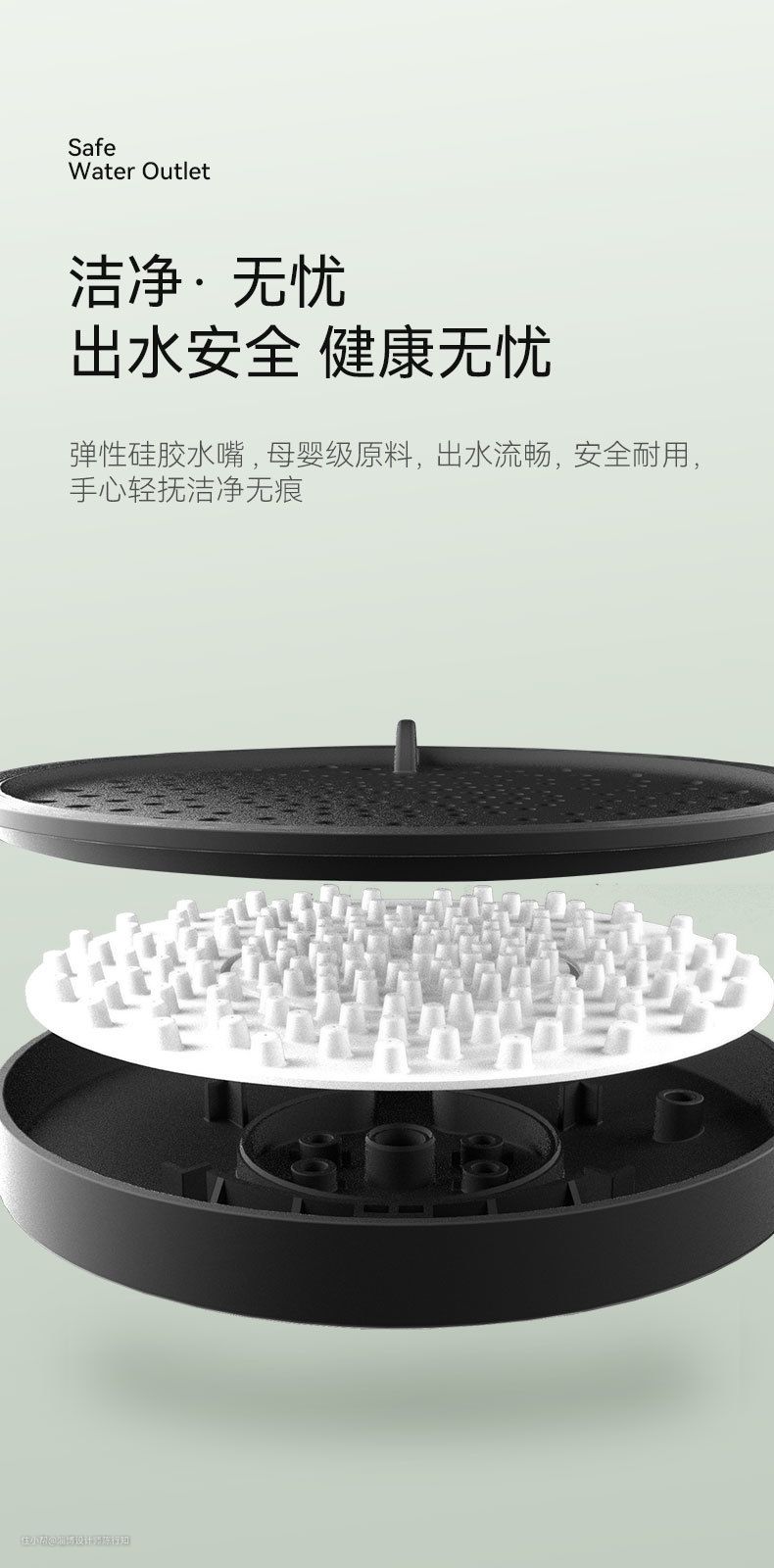 另外有一点千万不能忽略的,就是出水孔的问题,目前市面上以硬硅胶和软的液态硅胶为主,大家千万别选硬硅胶出水孔,能选软的液态硅胶就不选硬硅胶,软硅胶的优势就是更好打理,就算水垢堵塞用手揉搓几下,水垢就能自动清洁了,但是硬硅胶就不行,处理起来非常麻烦。