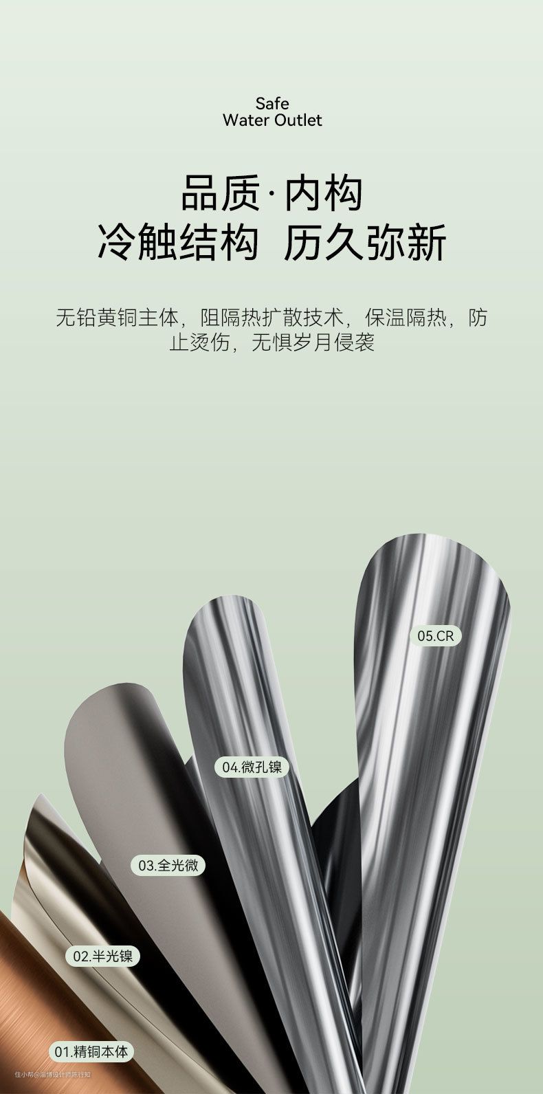 选择花洒材质首选一定是电镀花洒,电镀花洒不会生锈,也不会爆裂,有质感更耐用。水镀、喷漆、喷粉、氧化等花洒工艺都会出现起泡、掉漆、难保养的问题。尤其千万不要选烤漆花洒,烤漆就是在基材表面喷涂多层油漆,然后经过高温烘烤之后形成黑色漆膜,在使用一段时间后就会掉漆、脱模。