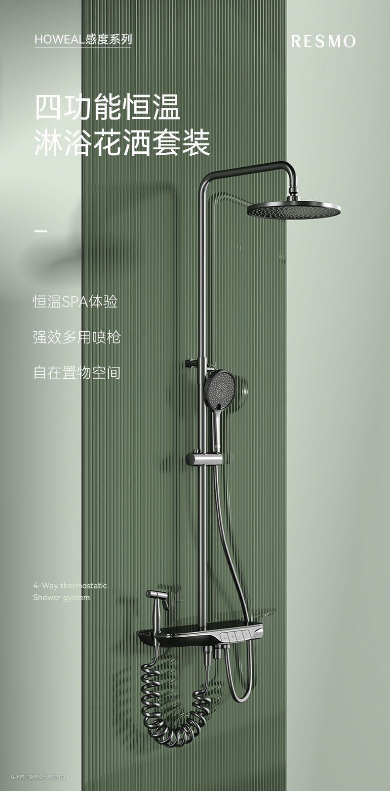 RESMO淋浴花洒独创的多功能顶喷切换技术,为我们的淋浴模式提供了多种选择