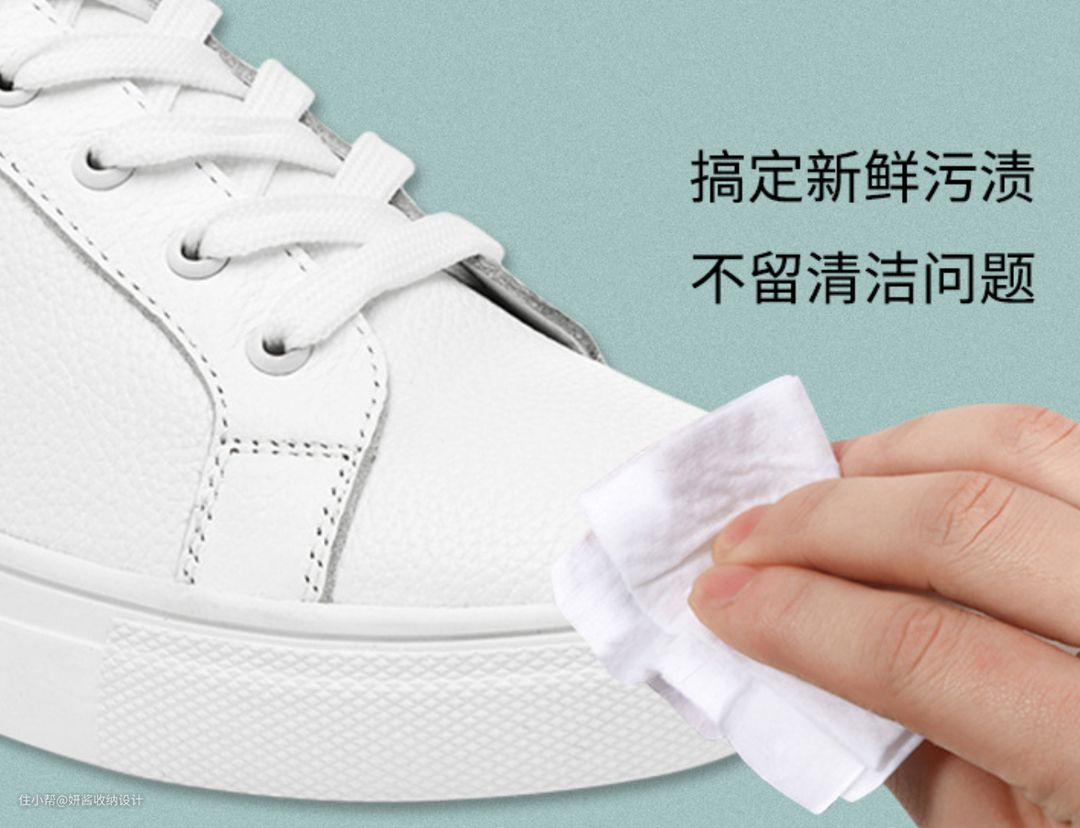 鞋子每天穿在脚上走来走去,可想而知粘在鞋子上的灰尘肯定不少。擦鞋湿巾的好处就在于可以方便快捷的清洁鞋子,一擦即净,省去清洗和刷鞋的麻烦步骤。而柔软的质地,也不会伤害到鞋子。